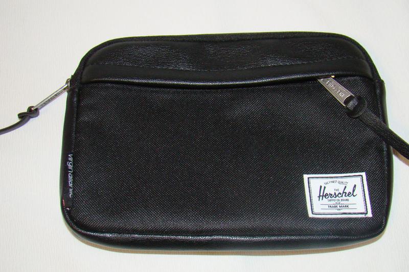 Плотная ткань и эко кожа. На подкладке. Снаружи карман на молнии. Высота 15 см, длина 20 см, ширина по дну 3 см.