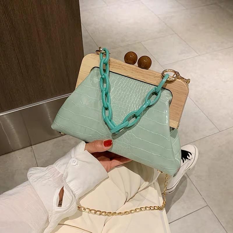 Сумка клатч з еко шкіри з дерев'яними вставками. Застібці - магніт. Є два знімних ремінця. Розміри 25/16/7 див.