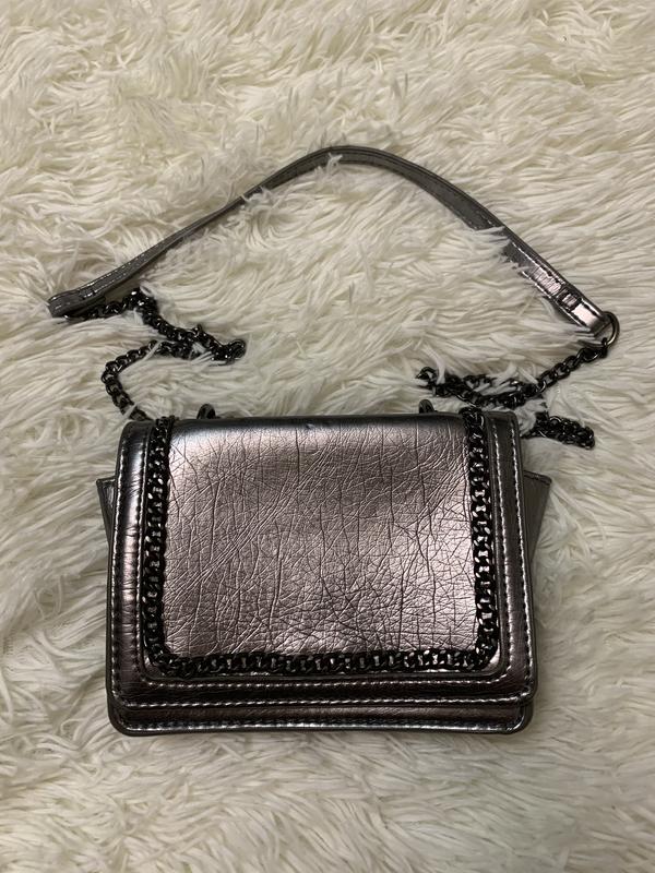 Серебристая сумочка ZARA, на цепочке и намагнитной защёлке.
