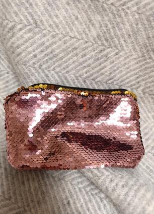 Дуже м'якенька, стан ідеальний 18*10,5 закривається на змійку перед розшитий паєтками