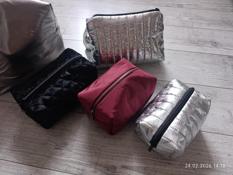 Косметички ручної роботи. В наявності: • Різні форми та розміри для будь-яких потреб • Якісні матеріали та надійні блискавки • Стьобана фактура для додаткової міцності • Кольорова гама: чорний, бордо, срібний, металік. Ідеально підходять для зберігання косметики, аксесуарів або дрібних речей. Компактні розміри зручні для подорожей та щоденного використання. Ціна від 200 грн. За додатковою інформацією звертайтесь в повідомленні або телефоном.