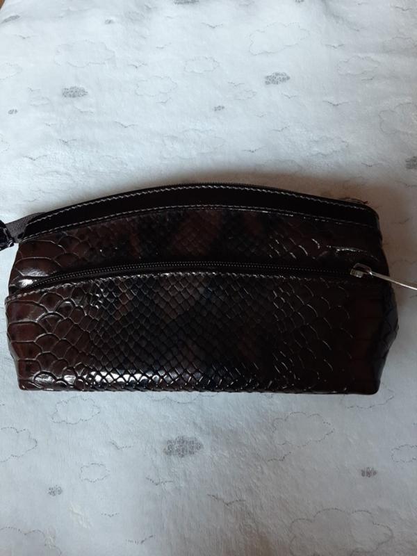 Під рептилію. Насичений шоколадний колір. Стан нової. Одне велике відділення і менше зовне.