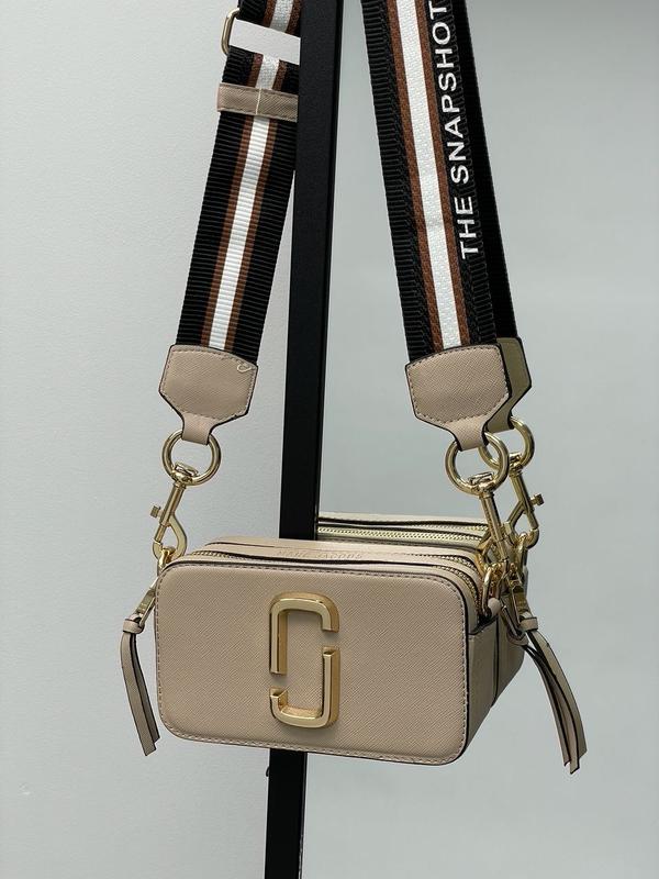 👜 Marc Jacobs Small Camera Bag Dark Beige (Арт: 02126) 💵 1750 грн 📐 Размір: 18 х 10.5 х 7 см 🧵 Матеріал: Еко Шкіра 🔎 Опис: Сумка виготовлена з екошкіри та текстилю, логотип металевий. Усередині два невеликі відділення, підкладка з червоного текстилю, є шкіряна нашивка з фірмовим тисненням. На задній стінці сумки є невелика кишенька. Ремінець на карабінах, шириною 5 сантиметрів і довжиною від 63 до 105 сантиметрів максимум. На карабінах та застібках є фірмові логотипи. Комплектується у брендованій коробці та папері (за додаткову плату можна придбати документи, пильовик та фірмовий пакет).