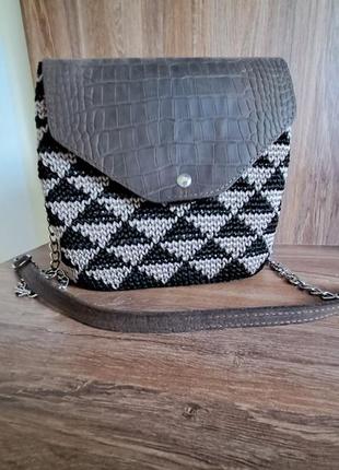 сумка в'язана крос-боді, шкіряна якісна фурнітура, плечовий ремінь, коротка ручка ланцюжок, розміри 22*25*10. В середині є підкладка з кишенями. Стильний аксесуар зробить ваш образ неповторним.