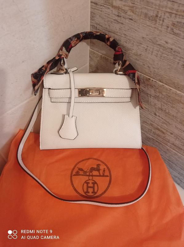 Білосніжна сумочка кроссбоді Hermes, з пильником і з хустинкою з лого бренду в ідеальному стані, лише мінімальні потертості на фурнітурі і де ключик прикріплений, на двох останніх фото показала зсередини одне відділення і кишеня збоку колодка і ключ в комплекті ремінь не регулюється 21/15/8см пересилаю