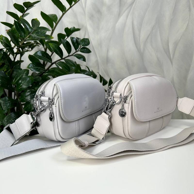 Сумка крос - боді 🔥 На три окремі відділення. • Розміри: висота - 17 см., ширина - 19 см., дно - 7 см. • Довгий текстильний ремінець. • Матеріал: еко шкіра. • Сумочка має три окремі відділення. Всередині додаткові кишені відкриті та на блискавиці. • З тильної сторони є кишеня на блискавці.