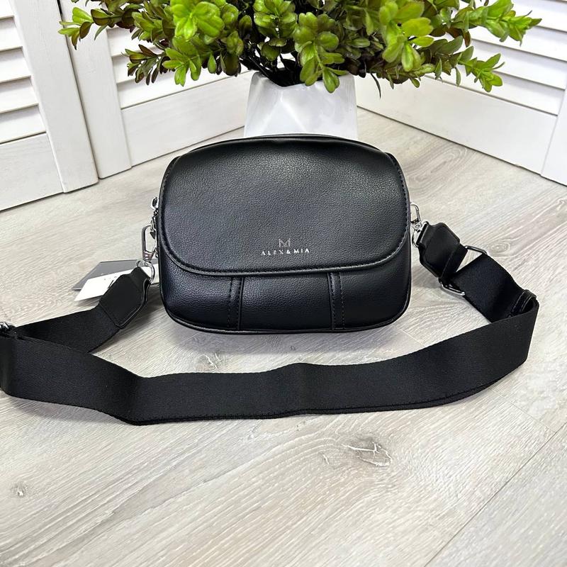 Женская сумка кросс-боди из экокожи с широким ремешком на три отделения