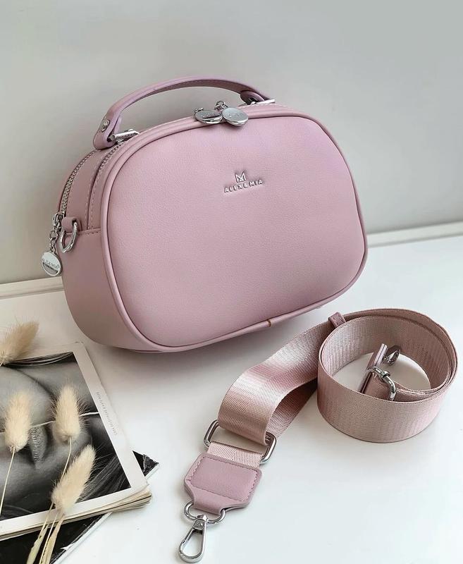 ▪️жіноча нова сумка бочонок через плече крос боді широкий текстильний ремінець рожева пудр...