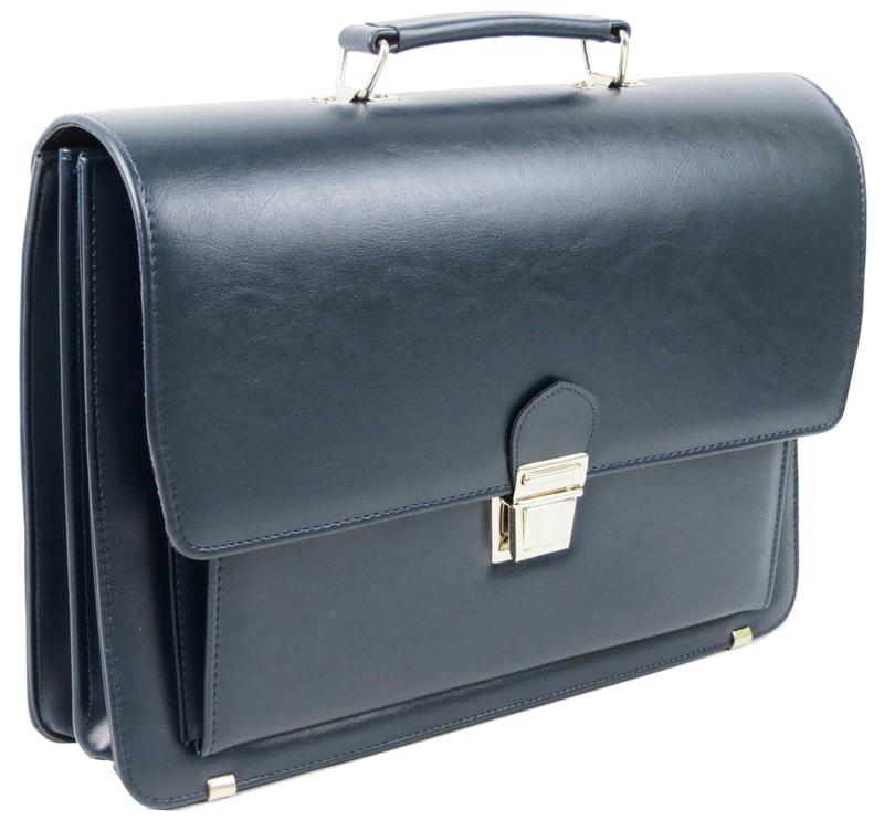 Чоловічий діловий портфель зі шкірозамінника AMO Польща SST09 темно-синій Раді представити Вам елегантний чоловічий діловий портфель зі штучної шкіри від польської торгової марки AMO. Опис товару: Портфель виготовлений із якісного шкірозамінника. Закривається клапаном на механічній клямці. Під клапаном три основні відділення. Також є кишеня-перегородка на блискавці. Усередині одного відділення розташовані три кишеньки для візиток і три петлі для ручок. Внутрішні перегородки зі щільної тканини. Одна зручна ручка. Характеристики: Матеріал: штучна шкіра. Колір портфеля: темно-синій. Зовнішні розміри портфеля (ШхВхГ): 40 х 28,5 х 10-13 см. Вага: 1215 г. Поміщаються документи формату А4. Виробник: AMO (Польща).
