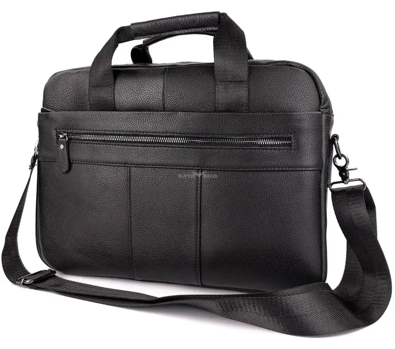 Офисная сумка предназначена для хранения и переноски документов и других необходимых повседневных вещей. Основное отделение сумки для документов закрывается при помощи молнии. В нем расположено 1 отделение для гаджетов с диагональю до 12 дюймов, фиксируется на липучку; 1 боковой карман на молнии и 2 накладных кармана. Снаружи по бокам этой сумки расположены 3 дополнительных кармана, которые закрываются с помощью молнии - 2 кармана с лицевой стороны, 1 - с тыльной. Фурнитура – металлическая, качественная; подкладка – прочная, текстильная. Сумка имеет удобные ручки для ношения в руке. В комплект также входит съемный регулируемый ремень через плечо. Тип: сумка для ноутбука, документов; Размеры (ШхВхГ, см): 39 х 29 х 7; Цвет: черный; Материал: натуральная кожа; Плечевой ремень: есть. Отправляем Новой почет с подпиской 200 грн на карту.