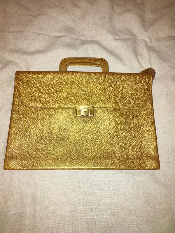 портфель, деловая сумка из натуральной кожи, ручной работы. винтаж. была покрашена акриловой краской, золотого цвета. состояние на фото. ручки сумки - выдвежные. полная оплата на карту банка!