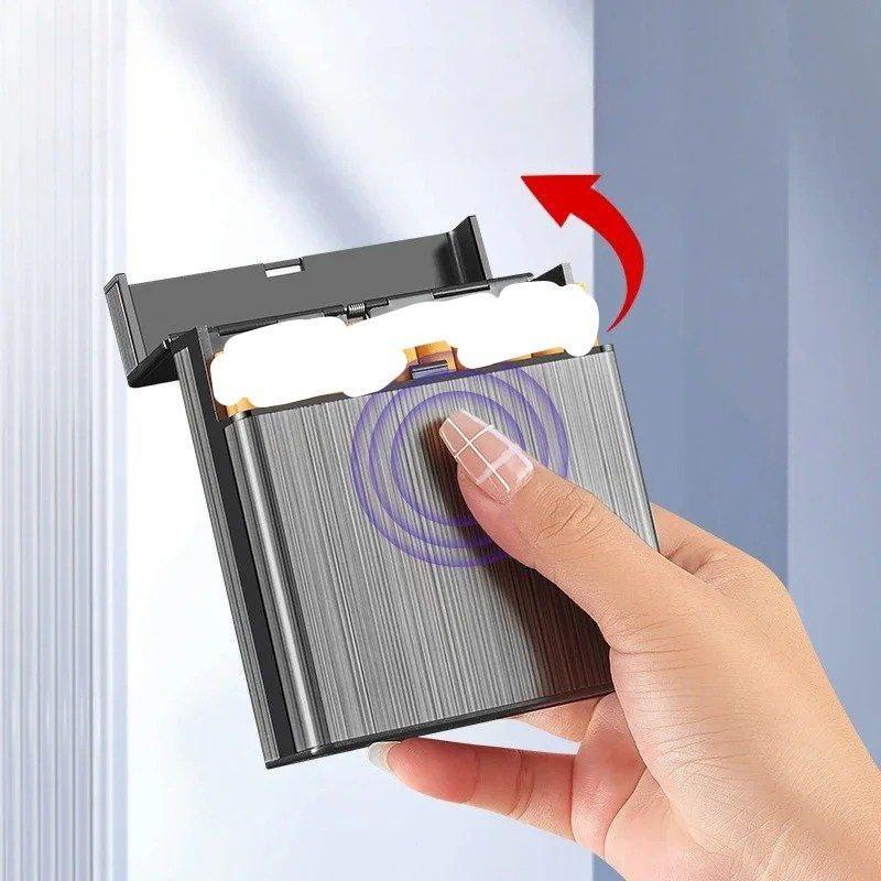 Удобный и вместительный металлический футляр, рассчитанный на хранение до 40 единиц стандартного размера. Оборудован автоматической крышкой для комфортного открытия одной рукой. Прочный корпус защищает содержимое от падений, давления и влаги. ⠀ Стильная матовая поверхность с металлической шлифовкой делает аксессуар универсальным решением для повседневного использования и отличным подарком. 📦 Материал: цинковый сплав + ABS 📐 Размер: 94×86×37 мм ⚖️ Вес: около 82 г 🔒 Защита от влаги, падений и деформации 🔁 Удобное автоматическое открытие