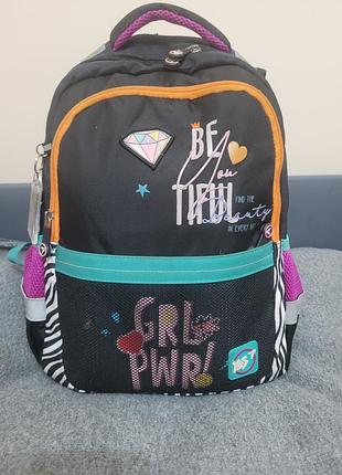 Ортопедична спинка рюкзака підсилена пом'якшувальними накладками, відповідає стандартам і зберігає поставу дитини. Рельєфні накладки з Air Mesh покриттям забезпечують повітрообмін і запобігають запотіванню спини. Широкі шлейки анатомічної, S-подібної, форми, регулюються завдовжки, не тиснуть на плечі. Система Quick setup — дає змогу за допомогою кілець на кінці ременя легко регулювати довжину шлейок, не знімаючи рюкзака зі спини. Поперечний ремінь фіксує положення рюкзака й забезпечує рівномірне розподілення навантаження на спину дитини. Передбачено коригування положення поперечного ременя, залежно від росту дитини. Дно рюкзака ущільнене, захищене від вологи та бруду. М'яка ущільнена ручка, ручка-петля. Світловідбивні елементи для безпеки дитини на дорозі в темну пору доби або в сутінку. Кількість відділень: 2 Кількість кишень: 3 Всередині: секції для правильної організації шкільного приладдя. ущільнене відділення з флісовою підкладкою для ґаджетів. органайзер кишеня з карткою для ідентифікації Матеріал: поліестер Розмір: 40 х 31 х 12 см Розмірна сітка: S Об'єм, л: 15 Вага, кг (+/- 10%): 0,75