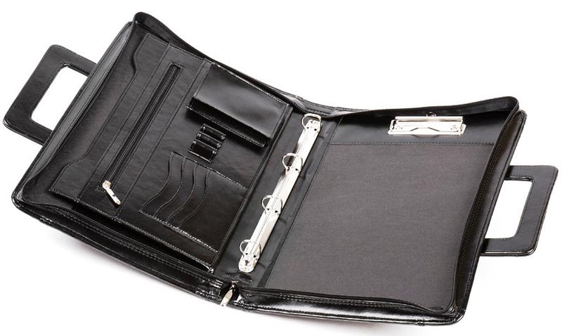 Папка портфель из эко кожи JPB черная AK-13 black Описание папки: Папка из качественной искусственной кожи. Держатель на пружине для разных документов или блокнота формата A4. Сегрегатор для фиксации документов. Три петли для ручек. Два отделения для документов А4. Четыре кармашка для визиток или платежных карт. Небольшой открытый накладной карман. Отделение для документов формата А4 . Два плоских кармана, один из которых на молнии. Две ручки которые при необходимости прячутся в специально предусмотренные кармашки. Характеристики: AK-13 black. Размеры: 38 х 26 х 4 см. Помещаются документы формата А4. Цвет: черный. Производитель: JPB Польша.