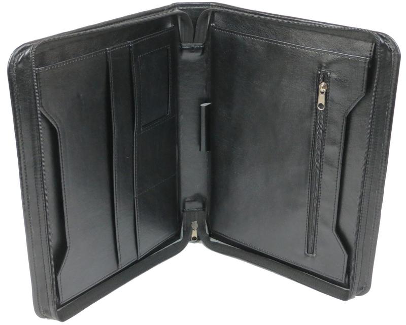 Папка ділова Exclusive зі шкірозамінника 711000 Опис моделі: Ділова папка застібається на блискавку. Усередині папки розташовані: з одного боку відсік для документів формату А4, кишеня на блискавці, петля для ручки; з іншого боку відсік для документів формату А4, прозора кишенька, дві кишеньки для візиток. Характеристики: Артикул: 711000. Виробник: Exclusive, Україна. Розміри: 35х26х4 см. Вага: 540 г. Матеріал: штучна шкіра. Колір: чорний.