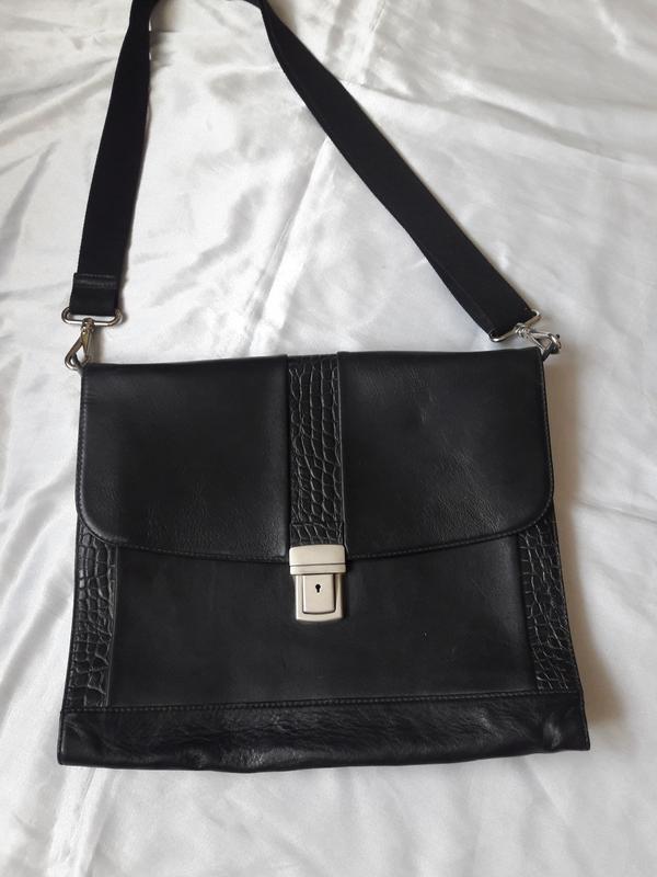 Фірмовий шкіряний портфель чорного кольору 37 × 31×8 див. Бренд VF.