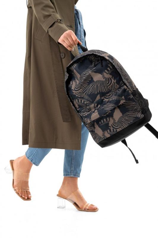 Рюкзак жіночий міський зі щільної тканини оксфорд хакі чорний принт ніч у савані