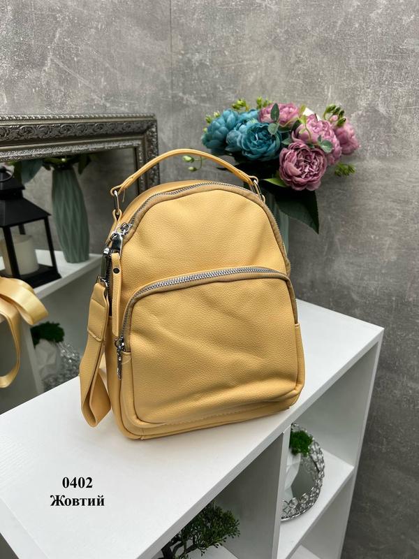 Екошкіра. 21х26х9 см. Одне відділення на блискавці,усередині відкрита кишеня і кишеня на блискавці. На лицьовій та зворотній стороні кишеня на блискавці. Якість 👍