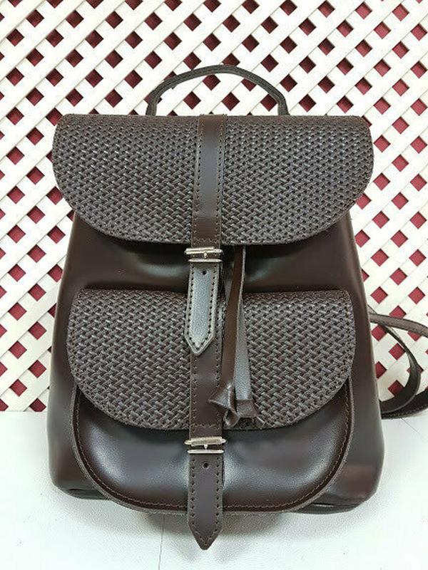 Рюкзак женский натуральная кожа, шоколадная матовая с плетенкой 1624