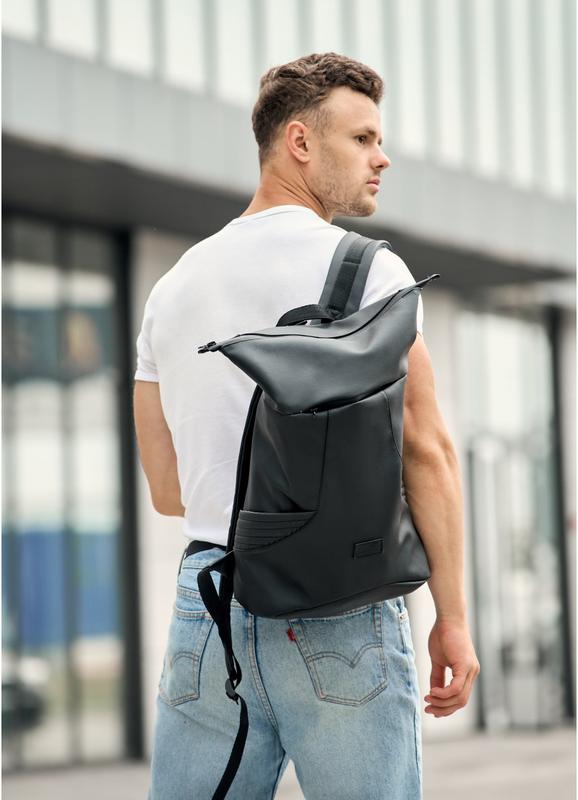 Рюкзак колекції Roll створений для потреб міста: прогулянок, роботи, навчання, спортзалу, урбан подорожей, весняного та літнього відпочинку. Місткий та функціональний помічник поміщає усі необхідні речі на кожен день. Характеристики: Матеріал верха: новітня екошкіра підвищеного рівня зносостійкості (не менше 50 000 циклів за тестом Мертиндейла). Шкіра водовідштовхуюча, стійка до вицвітання, еластична (не тріскає при експлуатації) та міцна на розрив. Підкладка. Матеріал оксфорд середньої щільності, міцний, стійкий до царапин, легко чиститься, нитки з нього не вилазять. Завдяки з'єднанню всіх частин підкладки між собою, навантаження на екошкіру зменшується і розподіляться рівномірно. Це продовжує термін служби шкіри та швів ззовні. Фурнітура. Блискавки типу YKK з надійного пластику. Бігунки металеві з фіксатором: рюкзак не відкриється самостійно від навантажень, а тільки рукою. Основне відділення на блискавці. Шлейки. Плечеві ремені шкіряні, надійно пришиті на планку по спинці. Приєднані до боків шкіряними трикутниками. Довжина регулюються за допомогою трьохщелівки. Функціоналість. Ззовні рюкзака спереду одна кишення прихована та дві кишені по бокам на блискавці. В рюкзака два великих відділення, одне із них під ноутбук до 14 дюймів (залежить від пропорцій екрану та рамок навколо нього - при замовлені уточнюйте розмір свого гаджету). З іншого боку середини кишеня на блискавці та одина відкрита кишеня. Розмір: 41*27*18 в згорнутому вигляді.