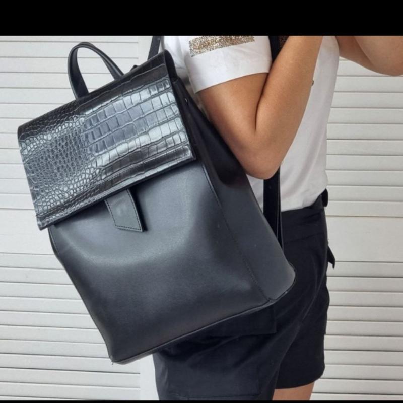 , ФОРМАТ А4 🔥 🔴 ЦІНА 985 грн.🔴 ФУРНІТУРА: срібло РОЗМІРИ: Ширина по низу - 26 см, висота - 35 см, дно - 11 см + ручка + ремінець МАТЕРІАЛ: ЕКО шкіра., підкладка - щільна тканина СКЛАД: Один відділ зверху закривається на блискавку і клапаном на кнопку-магніт. Всередині є відкрита кишеня і кишеня на блискавці. З тильної сторони - кишеня на блискавці.
