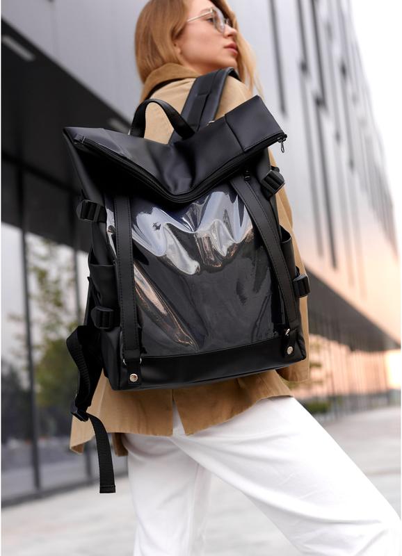 Рюкзак колекції Roll створений для потреб міста: прогулянок, роботи, навчання, спортзалу, урбан подорожей, весняного та літнього відпочинку. Місткий та функціональний помічник поміщає усі необхідні речі на кожен день. Характеристики: Матеріал верха: новітня екошкіра підвищеного рівня зносостійкості (не менше 50 000 циклів за тестом Мертиндейла). Шкіра водовідштовхуюча, стійка до вицвітання, еластична (не тріскає при експлуатації) та міцна на розрив. Спинка тримає форму: ущільнена піноматеріалом та зовні виконана з вентиляційного матеріалу AirMesh 3D. Підкладка. Матеріал оксфорд середньої щільності, міцний, стійкий до царапин, легко чиститься, нитки з нього не вилазять. Завдяки з'єднанню всіх частин підкладки між собою, навантаження на екошкіру зменшується і розподіляться рівномірно. Це продовжує термін служби шкіри та швів ззовні. Фурнітура. Блискавки з надійного пластику. Бігунки металеві з фіксатором: рюкзак не відкриється самостійно від навантажень, а тільки рукою. Встановлені два магніти, завдяки чому рюкзак зверху завжди тримає форму як на фото. Ремінна стрічка з фастексами регулюється зі збільшеням висоти рюкзака. Основне відділення на блискавці. Шлейки. Плечеві ремені шкіряні, надійно пришиті на планку по спинці. Приєднані до боків шкіряними трикутниками. На звороті ременів вентиляційна сітка AirMesh 3D . Довжина регулюються за допомогою трьохщелівки. Функціоналість. Ззовні рюкзака спереду одне велике прозоре відділення на блискавці. Дві выдкриті кишені з боків . Всередині рюкзака окреме відділення під ноутбук до 17 дюймів (залежить від пропорцій екрану та рамок навколо нього - при замовлені уточнюйте розмір свого гаджету). Відділення надійно захищено піноматеріалом по всій висоті гаджета. Також захищені піноматеріалом дві невеликих відкриті кишені. З іншого боку середини кишеня на блискавці та одина відкрита кишеня. Розмір: 41*30*16 в згорнутому вигляді (див. головне фото), в максимально розгорнутому вигляді габарити рюказака складають 53*30*16( див. додаткові фото). Рюкзаки доступні у кольорах.