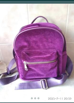 Рюкзак гламурнмй, велюр, типу штучна замш, висота-33см, ширина 30см, об'єм 15см, у відмінному стані