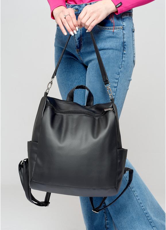 Всі товари: ********************* Жіночий рюкзак сумка чорний повсякденний класичний однотонний, матова еко- шкіра Розмір: висота - 34 см, ширина - 31 см, товщина - 15 см Розмір (ВхШхГ): 34 х 31 х 15 см (підійде для формату А4), Матеріал: екошкіра (водовідштовхувальна, зносостійка штучна шкіра високої якості), Регульована довжина плечових ременів, Ручка для перенесення, Зручний ремінець, Зовнішнє відділення на блискавці, Всередині підкладка, невелика кишеня на блискавці, Міцна якісна фурнітура.