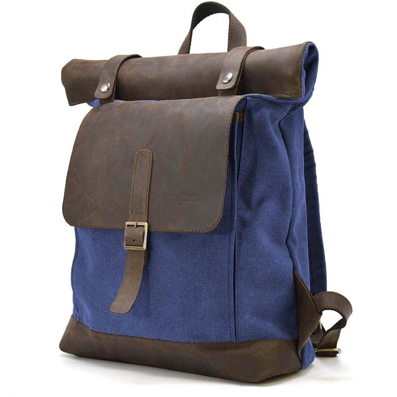 Рол-ап рюкзак зі шкіри та синій канвас tarwa rkc-5191-3md