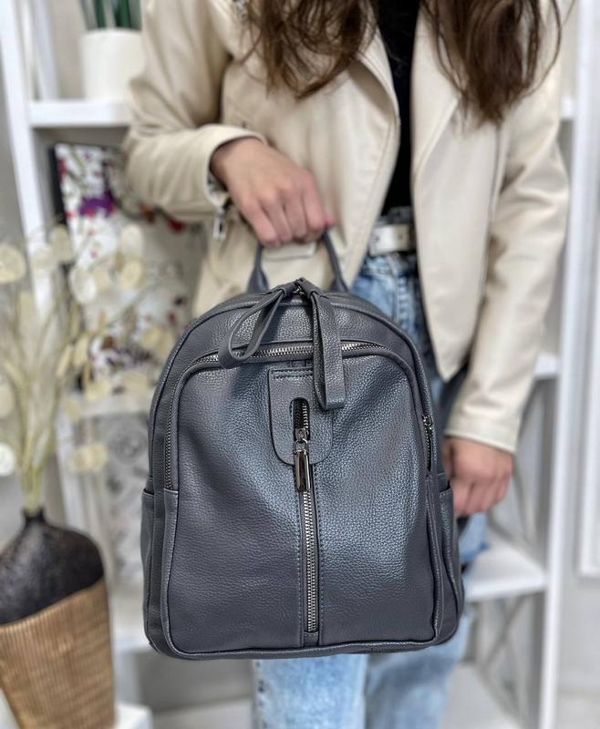 828339 Новинка❤️ Рюкзак змійка 2 відділи Ціна : 980 Колір: Сірий Розмір: 32/26/12 Матеріал: екошкіра довгі ремінці регулюється Встрічна змійка з декором ✅