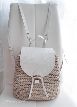 Рюкзачки ручної роботи з класичним візерунком з міцного шнура і легкі в догляді. Ремені, клапан і дно з еко-шкіри з тисненням. Всередині підкладка з кишенькою, бавовна. Розмір 35х27х14см. Також, можна замовити і в іншому кольорі! Вироби ручної роботи стали трендовими! Особливо якщо модель і колір відповідають модним тенденціям сезону! Додаткові характеристики: Стать: Жіночий Колір: Бежевий Колір: Білий Колір: Бордовий Колір: Блакитний Колір: Жовтий Колір: Зелений Колір: Золотистий Колір: Коричневий Колір: Червоний Колір: Помаранчевий Колір: Рожевий Колір: Сріблястий Колір: Сірий Колір: Синій Колір: Фіолетовий Колір: Хакі Колір: Чорний Матеріал: Штучна шкіра Матеріал: Шкіра Матеріал: Текстиль Матеріал: Пряжа трикотажна Тип: Міський Розмір: Великий Розмір: Середній Товар виготовляється на замовлення