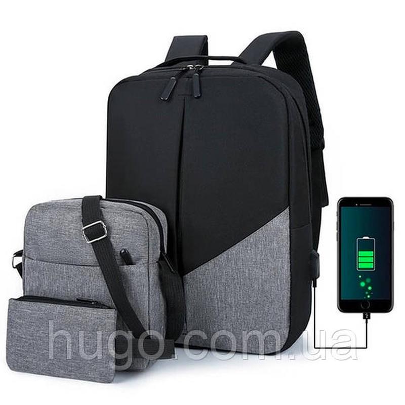 Рюкзак міський 3в1, 41х30х10см, з сумкою та гаманцем, 9320 / рюкзак із зарядкою для телефо...