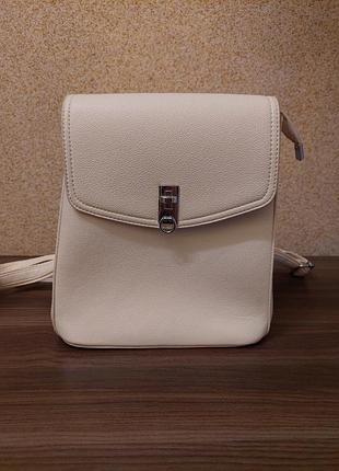 Жіночий рюкзачок-сумка молочного кольору Висота 25 см., ширина 12,5 см., довжина 22 см.