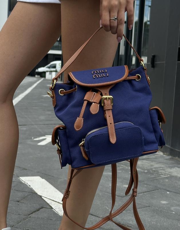 Рюкзак миу-миу canvas and leather backpack miu blue/brandy