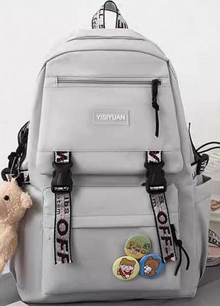Рюкзак 5 в 1 Ідеальний варіант для школи, університету або активного повсякденного життя Код моделі : 220 Колір : блакитний, рожевий, сірий , чорний , чорний-білий Тканина : дуже щільний текстиль , полієстер Рюкзак : 41х28х13см Сумка: 29х29х7см Клатч: 17х22см Мішечок : 13x11см Пенал: 19x8см