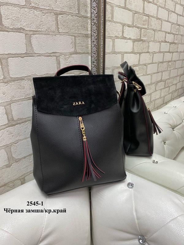 Код 2545-1. Нат.замша/кожзам. Україна 🇺🇦. Ціна 4️⃣0️⃣0️⃣грн. 26 см ширина . 31 см висота. 10 см дно. Одне відділення на блискавці ,поділене навпіл перегородкою на блискавці. Всередині кишеня для телефону і внутрішній кишеню на блискавці . На лицьовій і зворотній стороні кишеня на блискавці. Рюкзак можна носити сумкою . Підкладка дуже щільна .