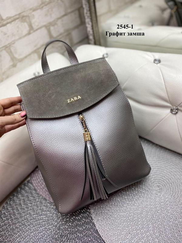 Код 2545-1. Нат.замша/кожзам. Україна 🇺🇦. Ціна 4️⃣0️⃣0️⃣грн. 26 см ширина . 31 см висота. 10 см дно. Одне відділення на блискавці ,поділене навпіл перегородкою на блискавці. Всередині кишеня для телефону і внутрішній кишеню на блискавці . На лицьовій і зворотній стороні кишеня на блискавці. Рюкзак можна носити сумкою . Підкладка дуже щільна .