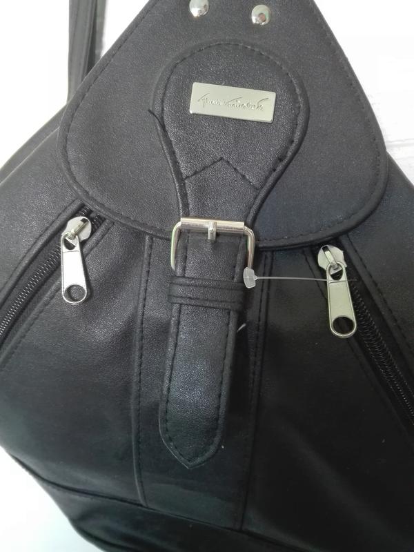 Рюкзак-сумка зі шкірозамінника, при растег вання ручки перетворюється в рюкзак, при застібанні - в сумку, багато кишень, новий, але бирка відірвалася.