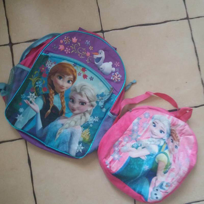 рюкзак з Ельзой менший в ідеальному стані 100гр і шкільний в хорошому 150гр