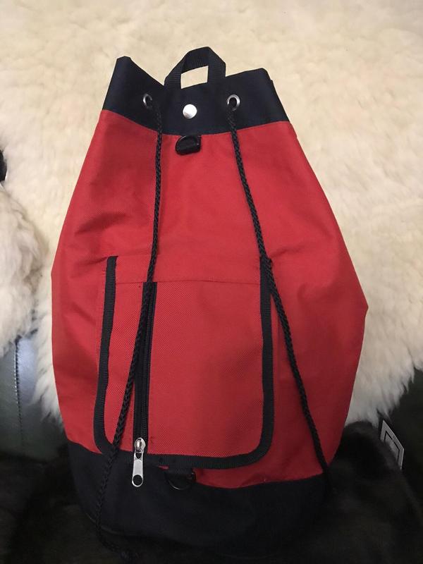 Классный рюкзак! Дно круглое 25см диаметр, высота рюкзака 45см. Сверху застегивается кнопкой и затягивается кулиской. Есть наружный карман
