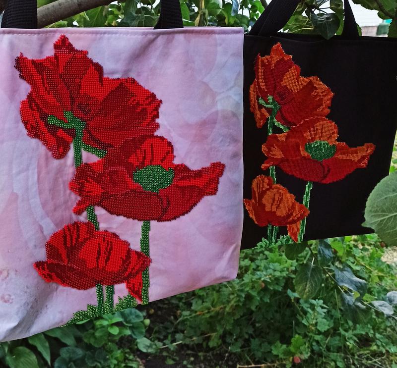 шопери вишиті бісером Розмір 33х37см Колір рожевий або червоний шопери в наявності Велика кишеня в середині шопер на змійці зручні ручки відправка новою або укрпоштою