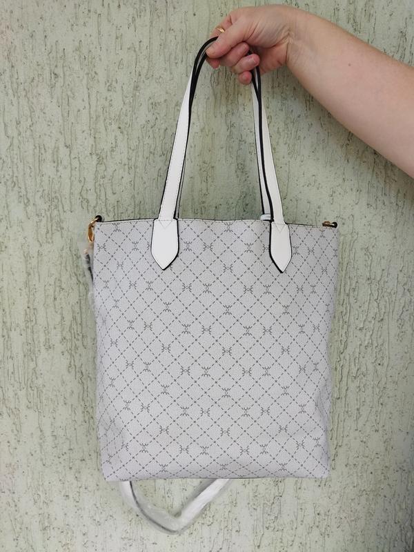 Качественная стильная сумка на одно отделение. В сумке нет ни карманов, ни молний. Просто сумка-торба. В качестве подкладки используется качественная эко-кожа. Фурнитура: золото Материал : эко-кожа высокого качества Высота 31 см Ширина по дну 29 см Глубина по дну 12 см Длинная ручка на плечо регулируется. Цвет белый с серым орнаментом. Заходите в мой магазинчик, там есть много интересных качественных товаров: нижнее белье, носочки, колготочки, кофточки, штанишки, шапочки, тапочки, текстильные изделия для дома, термобелье и многое другое. Буду рада вас видеть у себя в гостях. Подписывайтесь на мои обновления. Высылаю новой почтой и укрпочтой, оплата на карту Приватбанка и безопасная оплата на Шафе. Пишите - всем отвечу