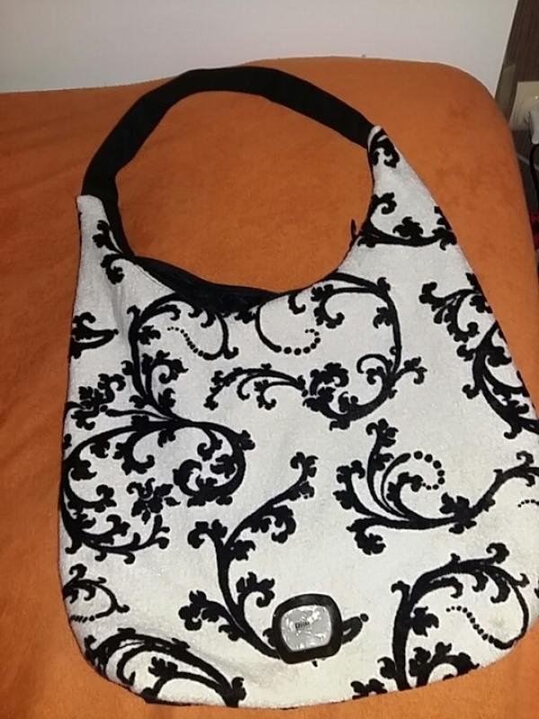 Нова. Насичений чорний колір Спереду дуже оригінальна вишивка а на другій стороні 2 кишені на застібках і всередині є відділення. Круто виглядає. ширина 29 см, висота з ручкою 67 см.