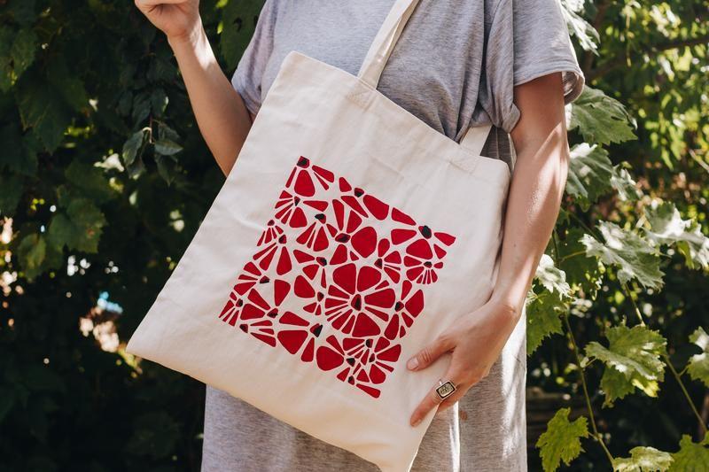 Зручна та практична сумка-шопер із розписом ручної роботи. Із цією сумкою ви подбаєте про природу, адже вона замінить вам поліетиленові пакети. Малюнок виконаний якісними акриловими фарбами. Виріб можна прати в пральній машині на делікатному режимі виворітною стороною. Сумка виконана із натуральної тканини - саржа. Розмір 36см х 38см; довжина ручки - 30см Додаткові характеристики: Матеріал: Бавовна Вид: Еко сумка