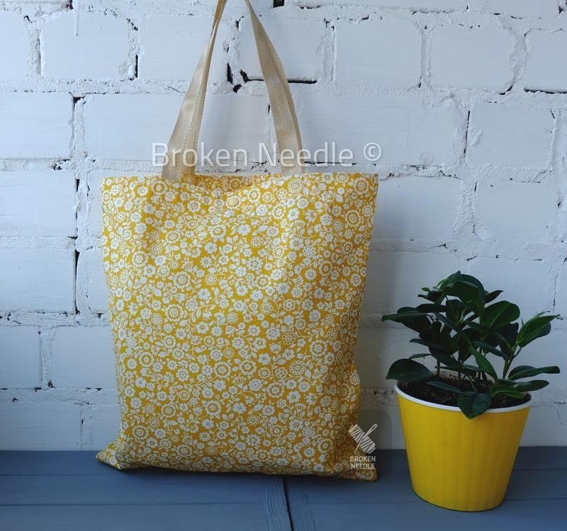 Еко сумка жовта з квітами, сумка пакет, еко-торба, сумка шоппер