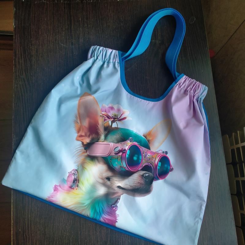 Зручна сумка-шопер. Пошита із якісної плащівки. Вміститься в маленькій сумочці і завжди буде під рукою. Розмір 40*45 см, довжина ручок 57 см. Можна носити як в руках, так і через плече.