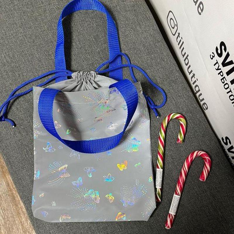 Світловідбиваючий шопер світашка міні на завязках метелики сині ручки