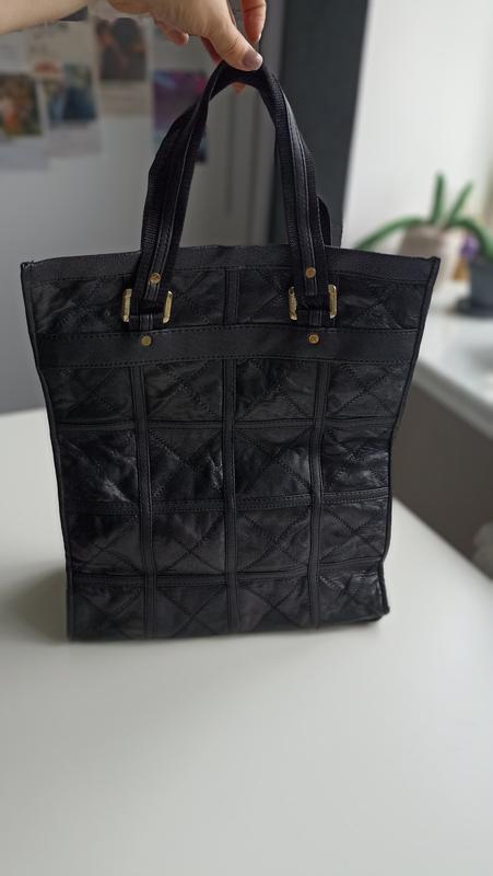 Предлагаю винтажную сумку шоппер Состояние новой вещи, в использовании не было Одно большое отделение Длинной ручки НЕТ Внутри есть небольшие карманы На подкладке Выполнена из кусочков кожи, в отделке использован заменитель кожи Замеры Длина 38 см, функционально 31 см Ширина 32 см Дно 11,5 см
