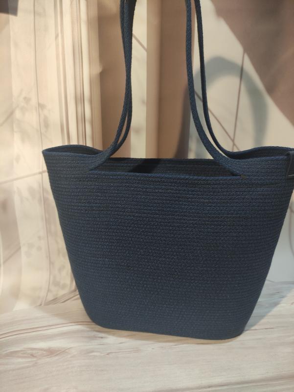 Стильна сумка-шопер з бавовняного шнура в кольорі Темна лагуна. У середині кишеня на блискавці. Зручна, довга ручка дозволяє носити сумку на плечі. Під замовлення в любому кольорі. Розмір 27×40×12 см.