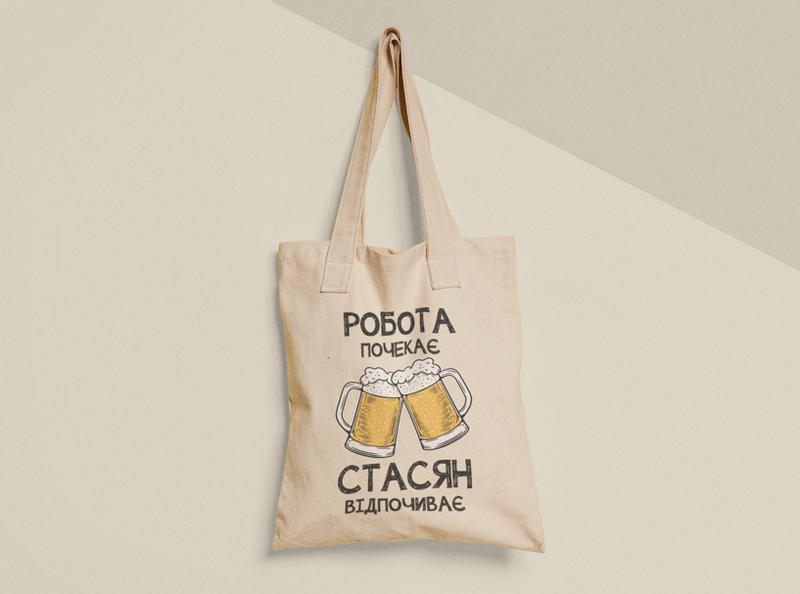 Эко сумка шопер с принтом стасян відпочиває стас станислав, размер 38х40см, хлопок